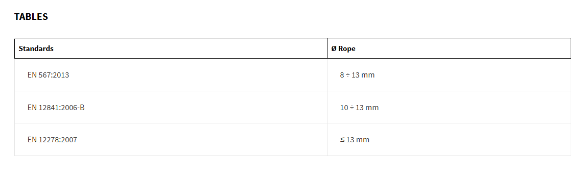 - thanks to the ability of locking the cam, it can be used as a simple pulley for lifting or transferring a load in accordance with the EN 12278 standard (pulley mode);